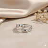 Crafted from 925 sterling silver with a polished finish, this dual-band ring features six freely spinning spheres that glide smoothly with every touch. Its design blends structure and flow, offering both elegance and serenity in motion.